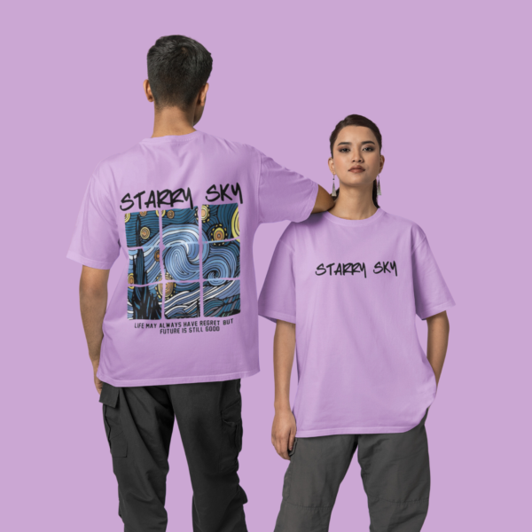 Elevate your wardrobe with our Purple starry sky oversized t-shirt, perfect for those who prioritize style and convenience. Our collection features a range of unique, trendy designs that make a statement wherever you go.
